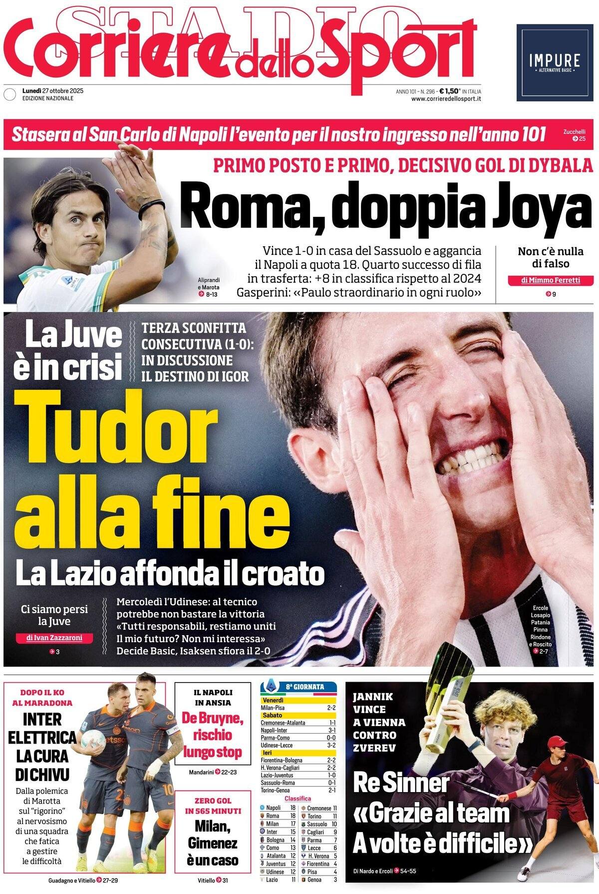 Le prime pagine del 26 Ottobre 2025