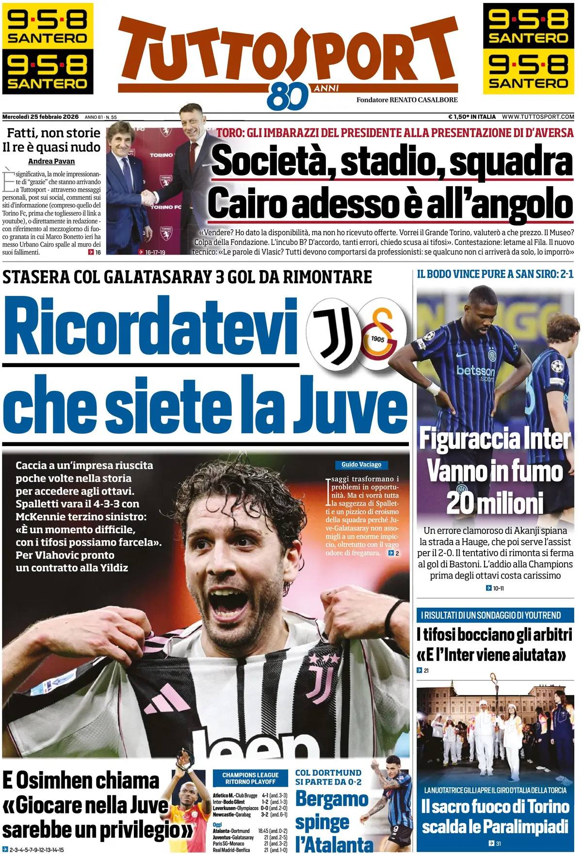 Le prime pagine del 25 Febbraio