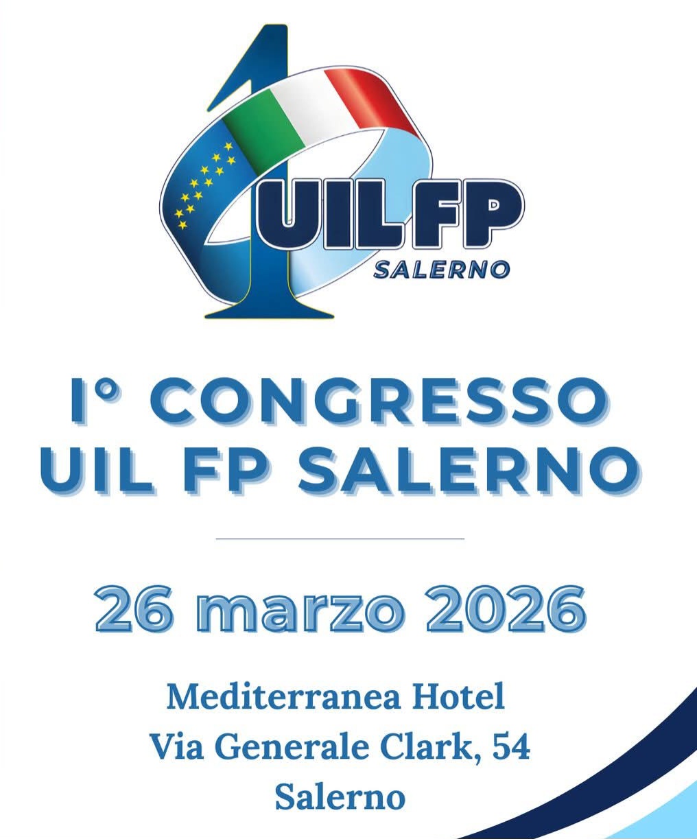 Si terrà giovedì 26 marzo 2026, a partire dalle ore 09.30, presso la Sala dei Congressi del Mediterranea Hotel (via Generale Clark, 54), il Primo Congresso della UIL-FP Salerno.