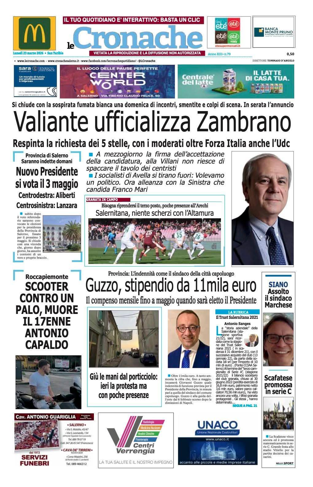 Le prime pagine del 23 Marzo