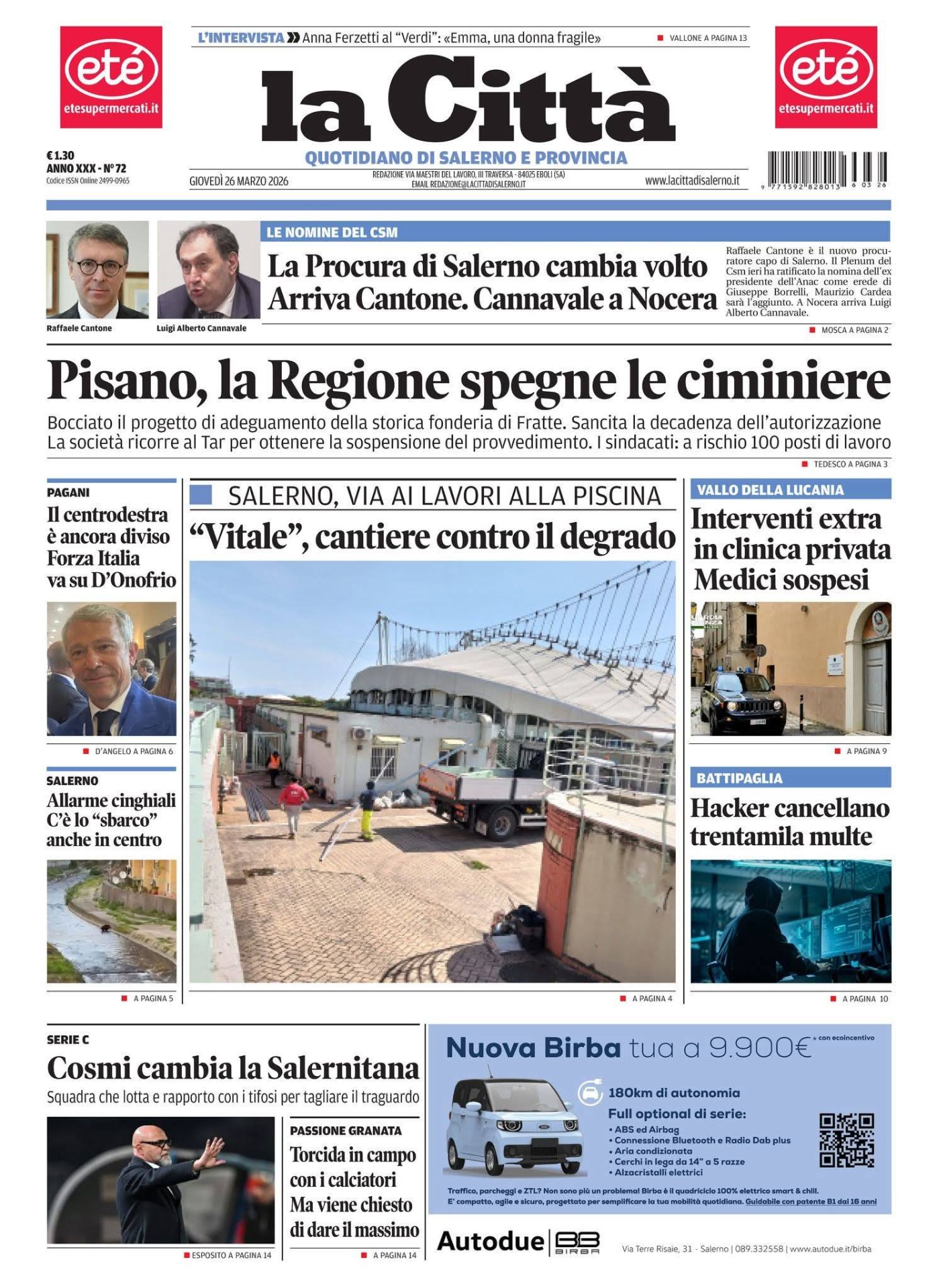 Le prime pagine del 26 Marzo