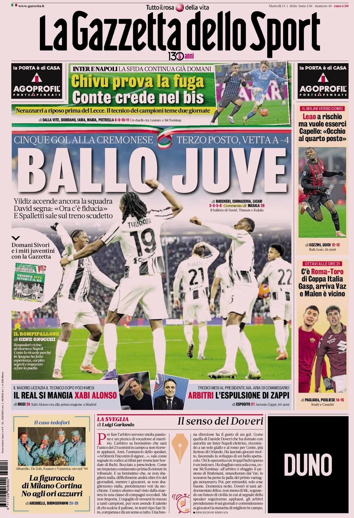 Le prime pagine del 13 Gennaio