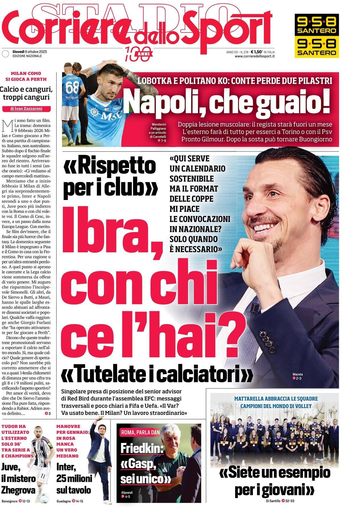 Le prime pagine del 9 Ottobre 2025