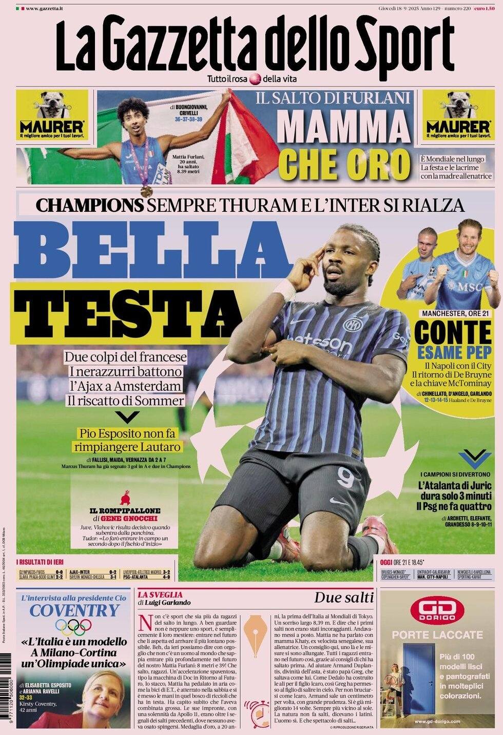 Le prime pagine del 18 Settembre 2025