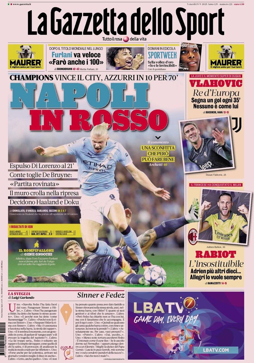 Le prime pagine del 19 Settembre 2025