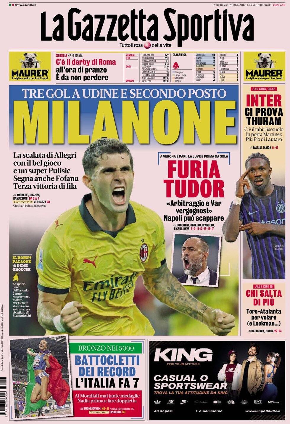 Le prime pagine del 20 Settembre 2025